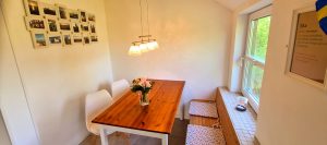Charmanter Landhausstil mit vollausgestatteter Küche inkl. Geschirrspüler, gemütlichem Wohnbereich und Gartennutzung.