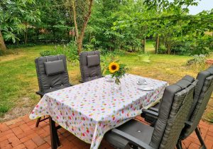 Jederzeit steht Ihnen ein lauschiges Plätzchen in unserem schönen Garten zur Verfügung. Neue Gartenmöbel laden ein zum gemütlichen Verweilen. Ein eigener Parkplatz für Autos & Fahrräder befindet sich direkt vor dem Haus.