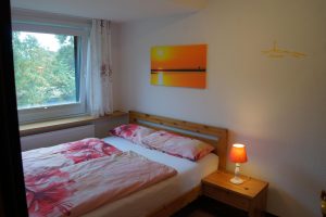 Im Schlafzimmer finden Sie ein bequemes, kuscheliges Bett (140 × 200 cm) mit neuer Matratze. Das Badezimmer ist durch ein großes Fenster lichtdurchflutet, ein Föhn ist vorhanden.